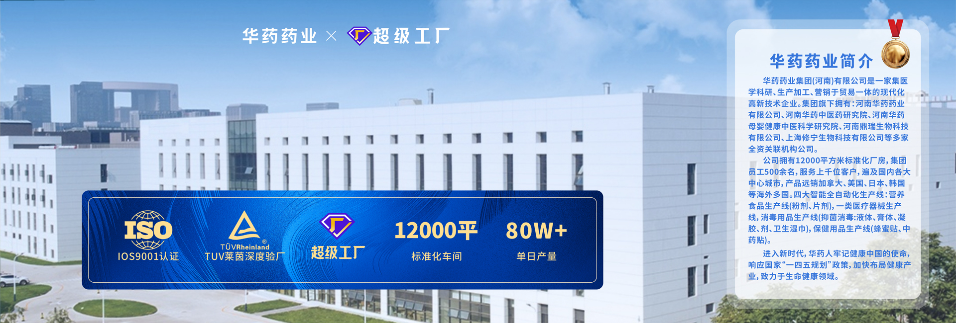 河南華藥集團是一家集研發(fā)、生產、加工、銷售于一體的現代化高新技術企業。集團旗下擁有河南華藥藥業有限公司、上海修寧生物科技有限公司、河南鼎瑞生物科技有限公司三家全資子公司。華藥集團先后創(chuàng)立了“華藥漢本”、“華藥帝龍”、“修寧康”、“仁和泰康”、“信爾康”、“豫醫(yī)古方”、“汐博士”、“HYHB”、“華育慧寶”等多個知名品牌。生產線涵蓋粉劑、片劑、液體、蜂蜜貼、膏藥貼劑等五大生產線。現有產品100余..···